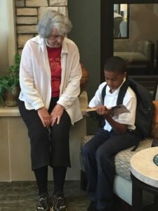 The Boys & Girls Club of Greater Durham and The Forest at Duke recently partnered to bring together two generations through reading. Having selected their favorite books donated by Book Harvest, fourth and fifth grade children read aloud to The Forest’s book club, many of whom were former educators. Soon after they started to read, discussions about books, school, life, and dreams could be heard throughout the small library. Stories were told, laughs were had, and groans of disappointment were heard when it was announced that it was time to leave. In just a short amount of time, reading had brought together two very different groups of people. By providing books, Book Harvest was able to create a foundation for a positive interaction between some of Durham’s youngest residents and its oldest.